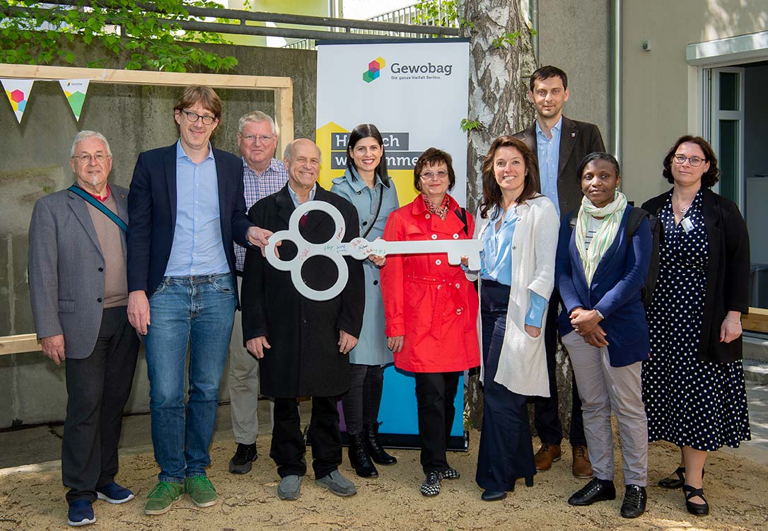 Eröffnung des Mehrgenerationenhauses Silbersteinstr. 3. Im Herzen Neuköllns liegt das sanierte Wohnhaus, das insgesamt 14 Einzimmerwohnungen, 4 Familienwohnungen sowie Büro- und Gemeinschaftsfläche für die Betreuung zur Verfügung stellt.